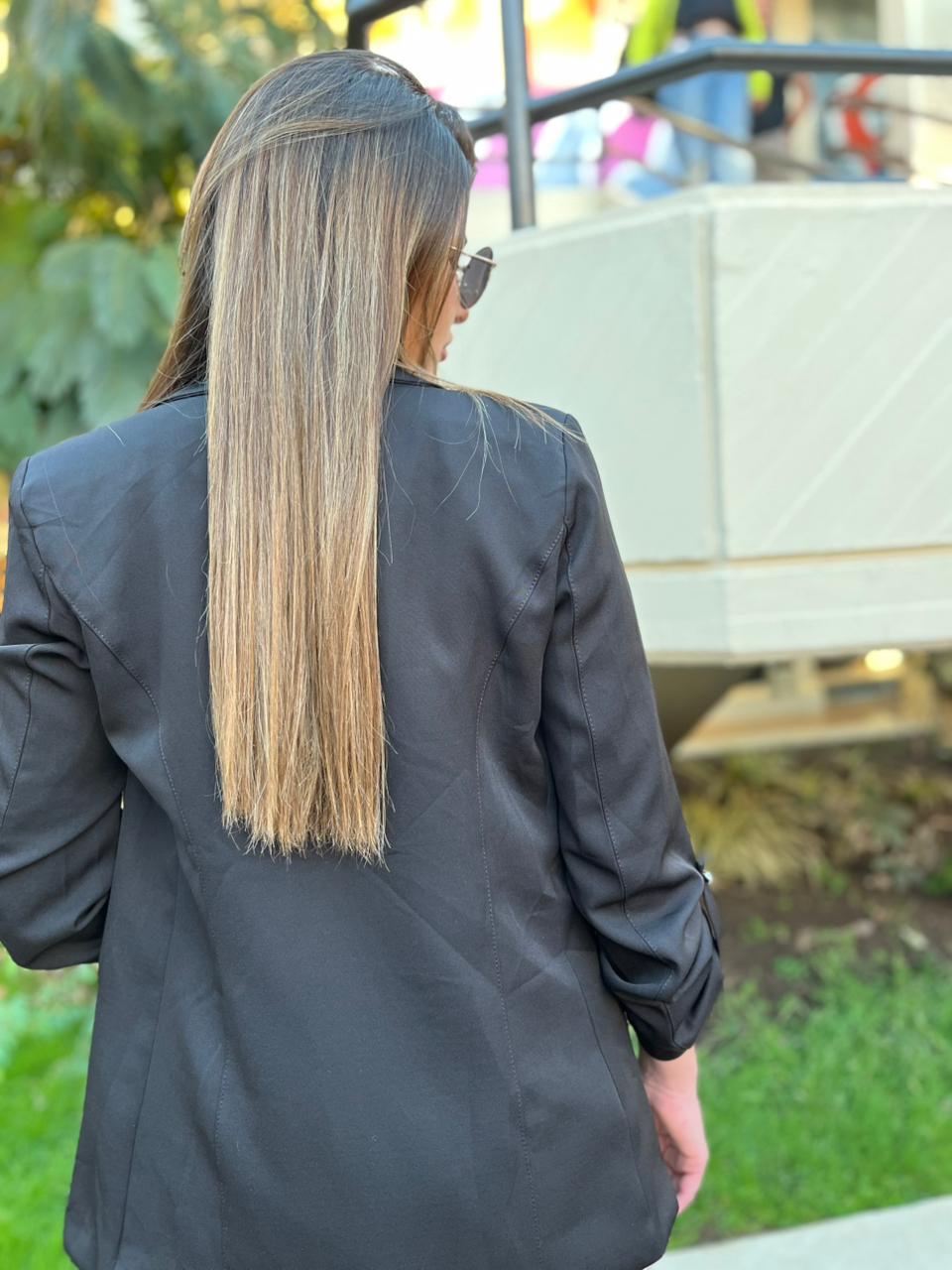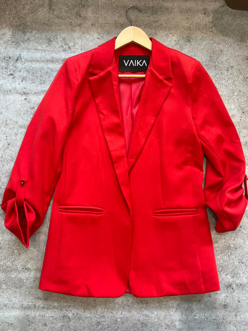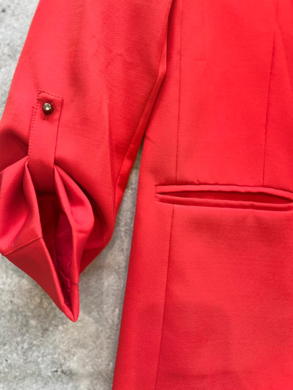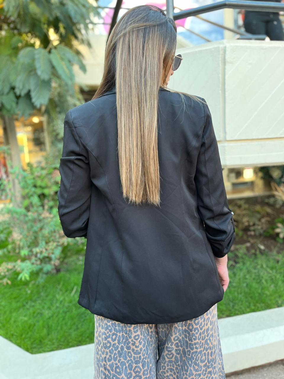 Blazer entallado, con forro, bolsillos y detalle en las mangas para acortarlas.
