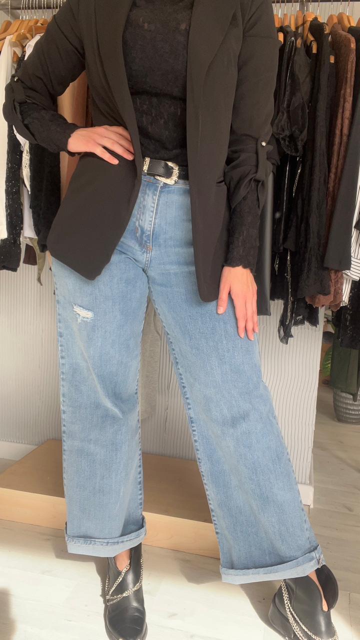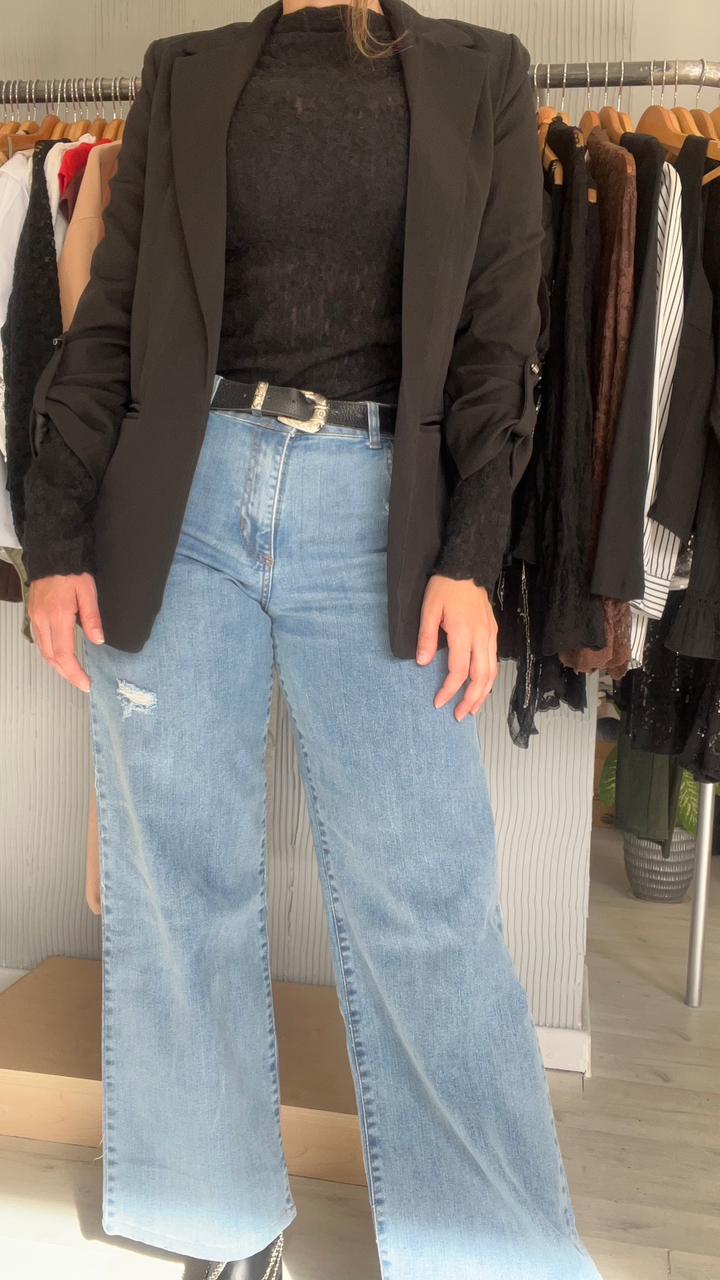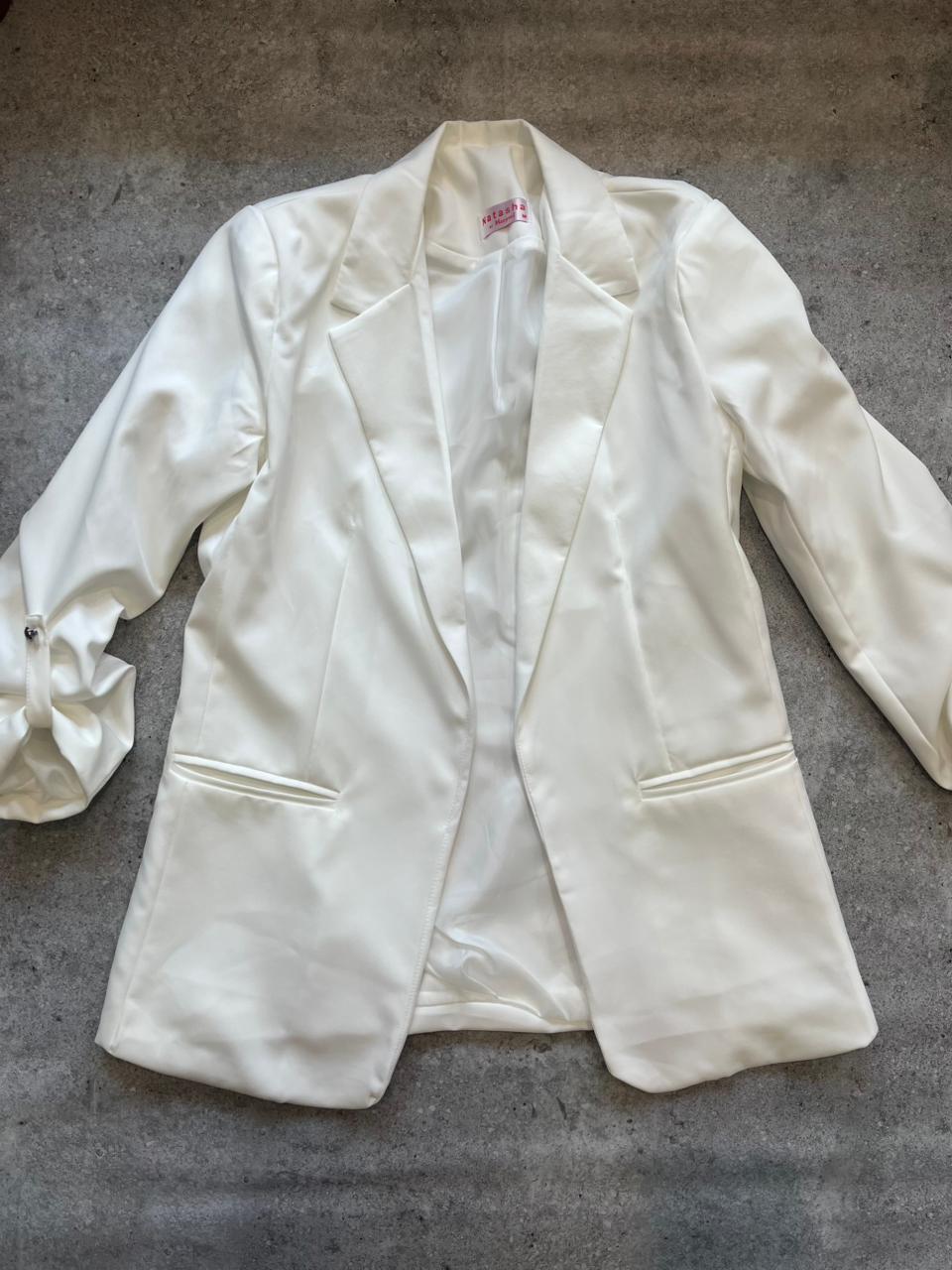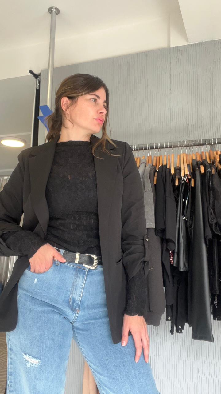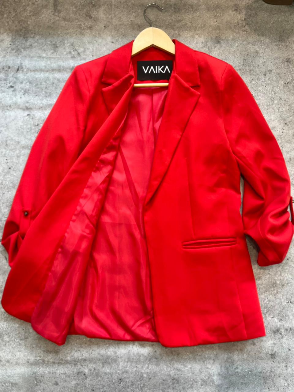 Blazer entallado, con forro, bolsillos y detalle en las mangas para acortarlas.