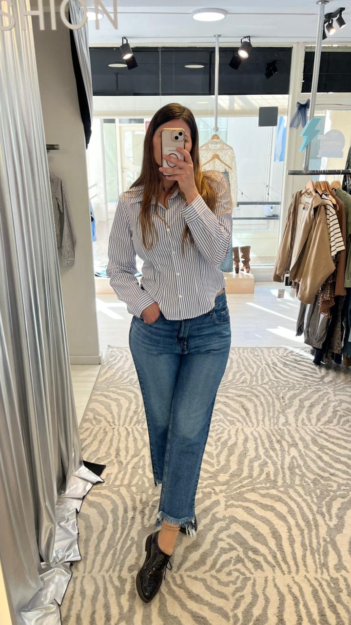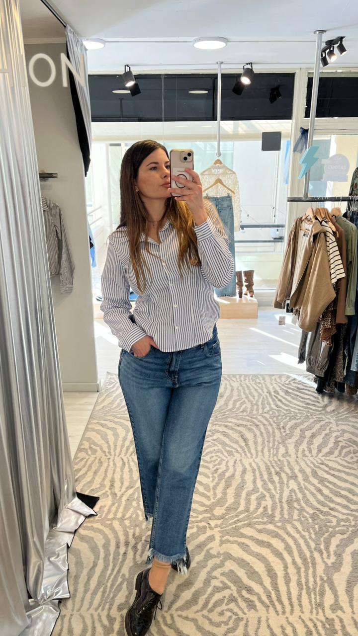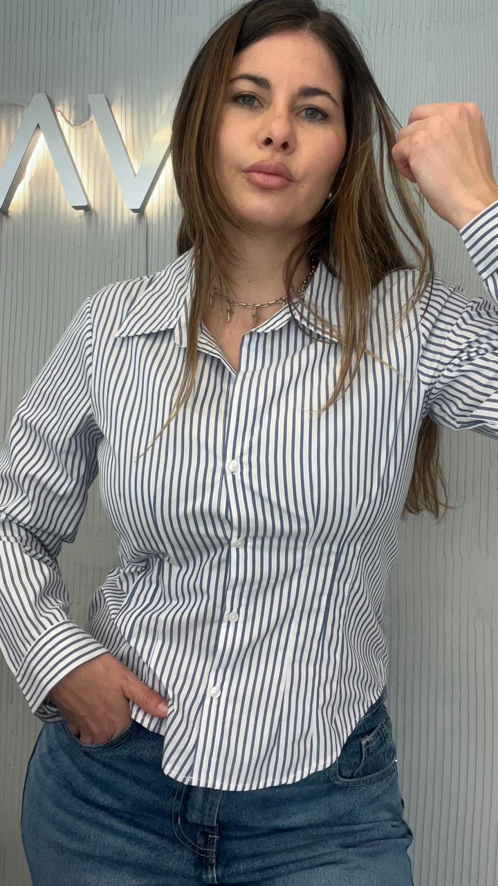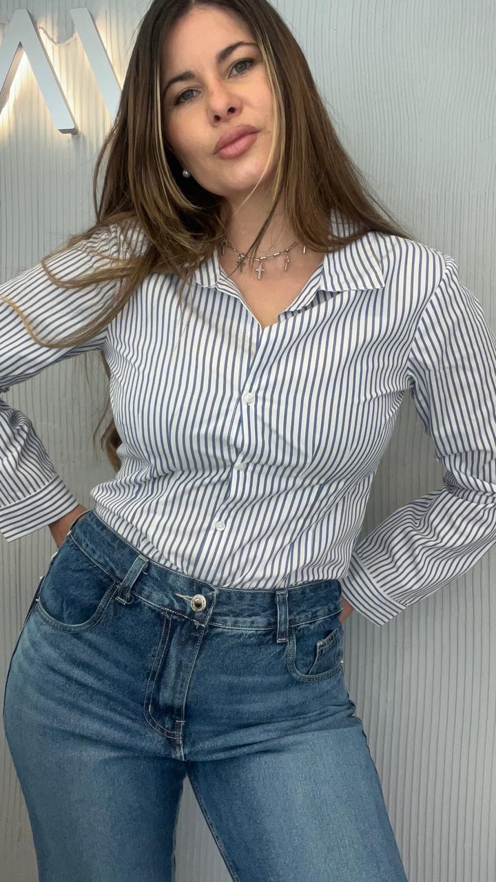 MATERIAL: Poplín camisero rayado con spandex (Algodón).