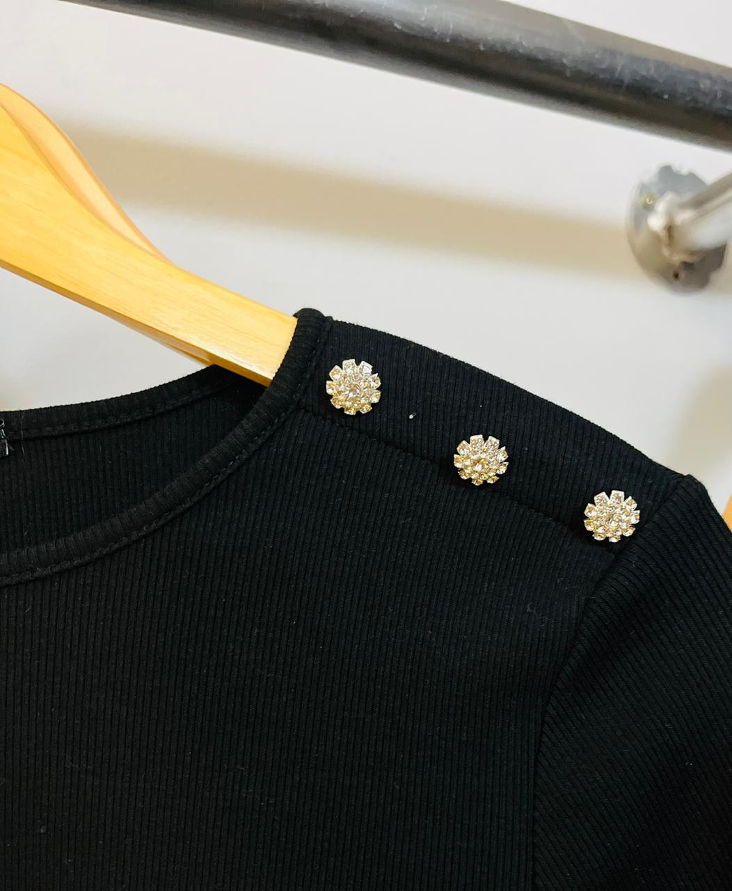 Elastizada con detalles de strassREMERA MANGA LARGA 95% ALGODON, 5% SPANDEX.