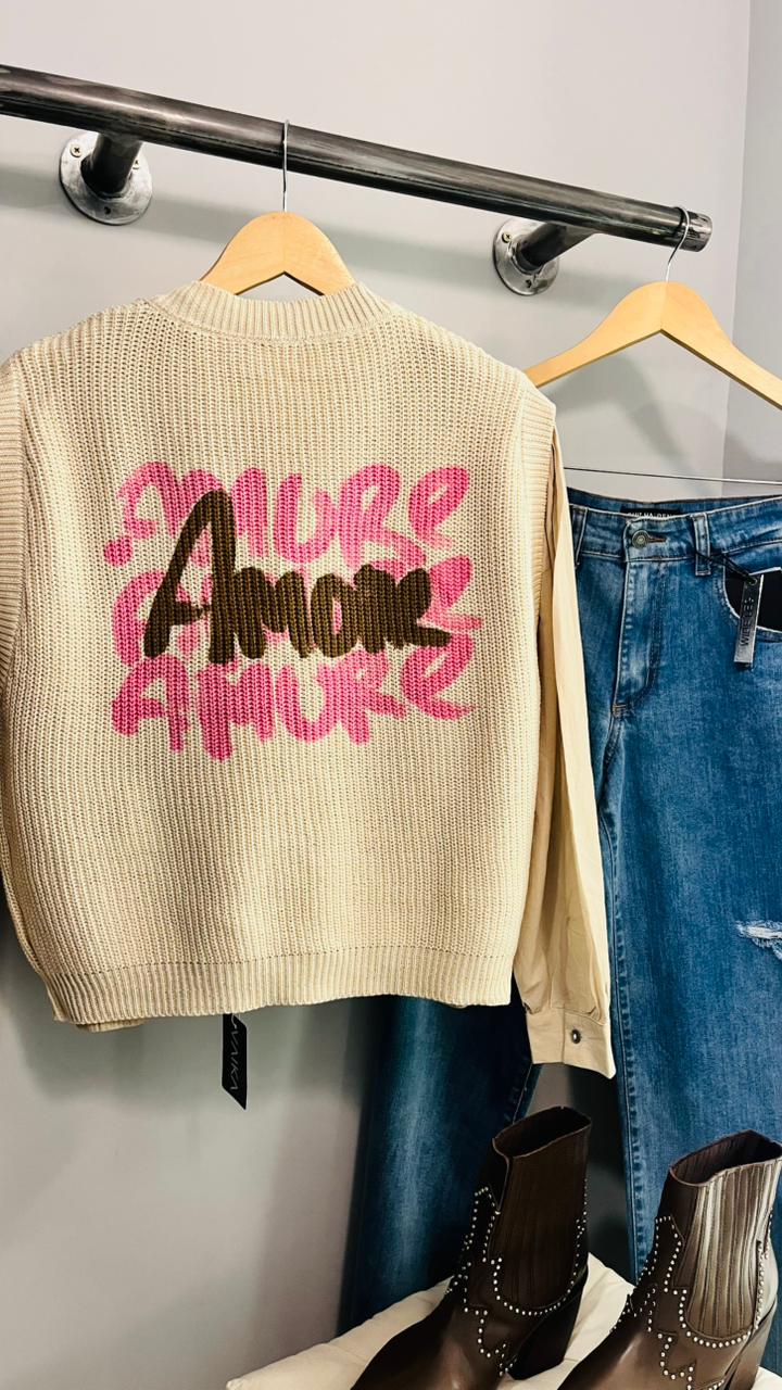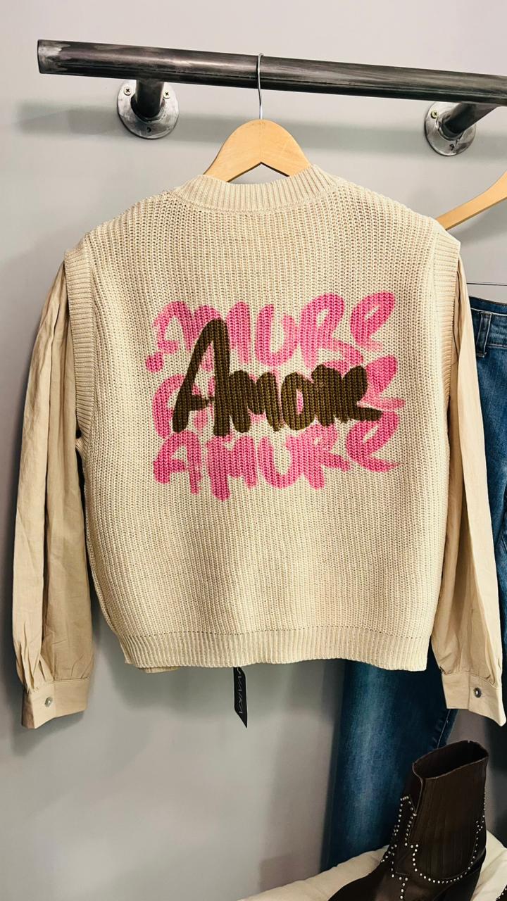 Descripcion: Chaleco estampado en la espalda "amore amore"