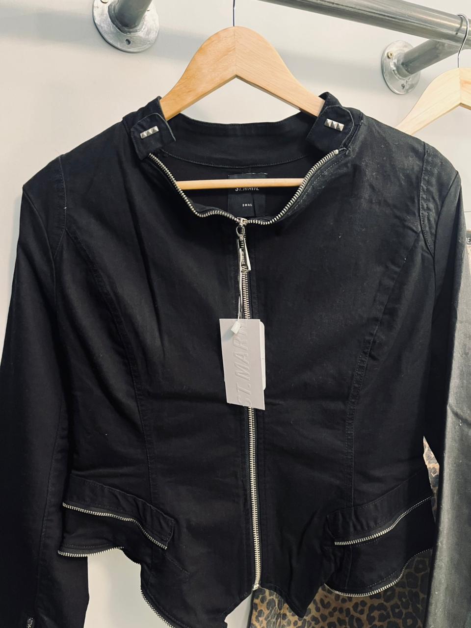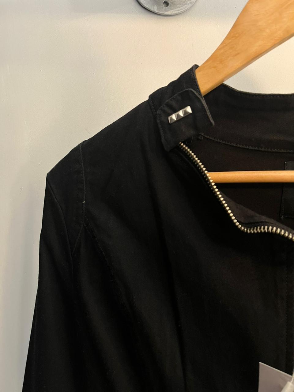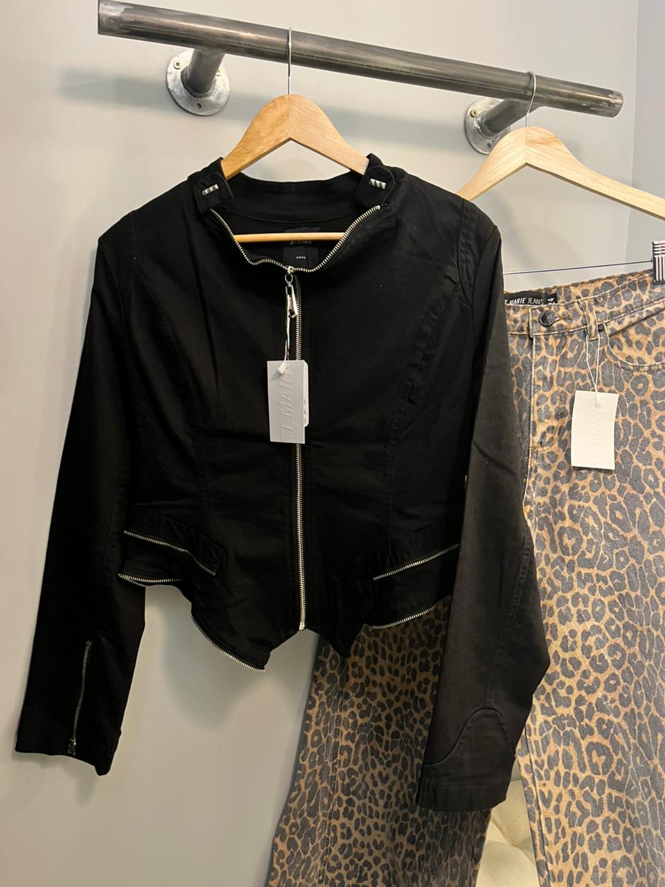 Campera entallada con textil elastizado, con detalle de cierres y tiracierre personalizado