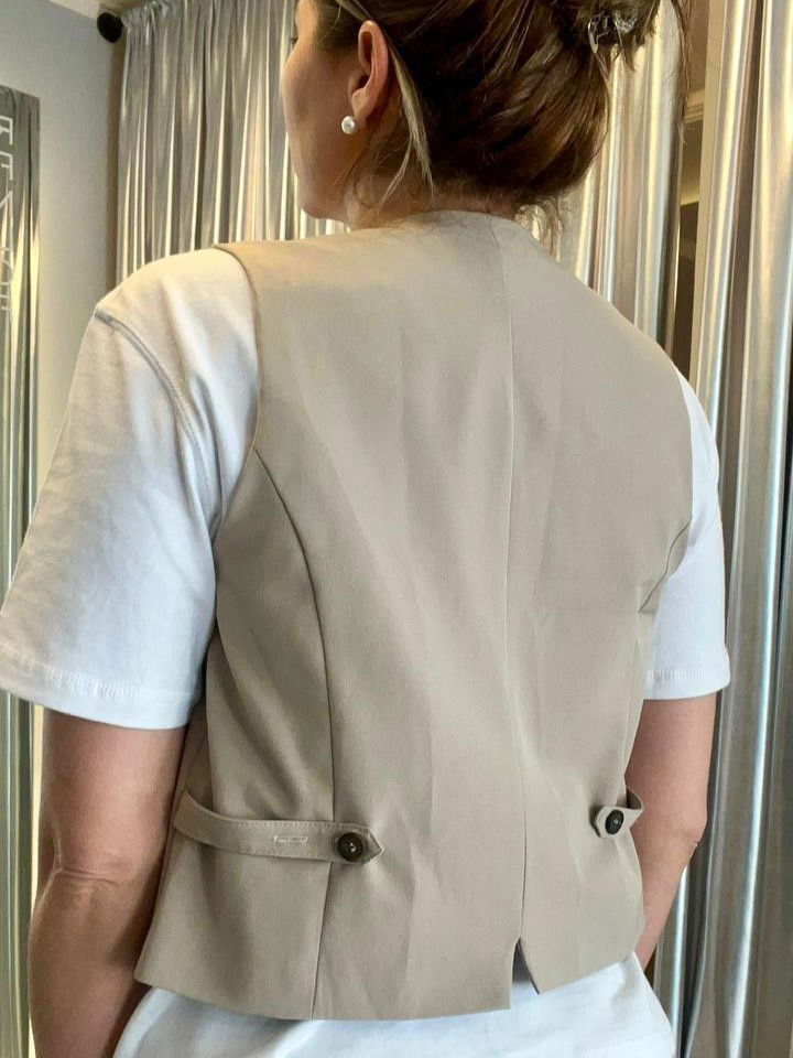 Chaleco sastrero forrado con tiras de ajuste en espalda.