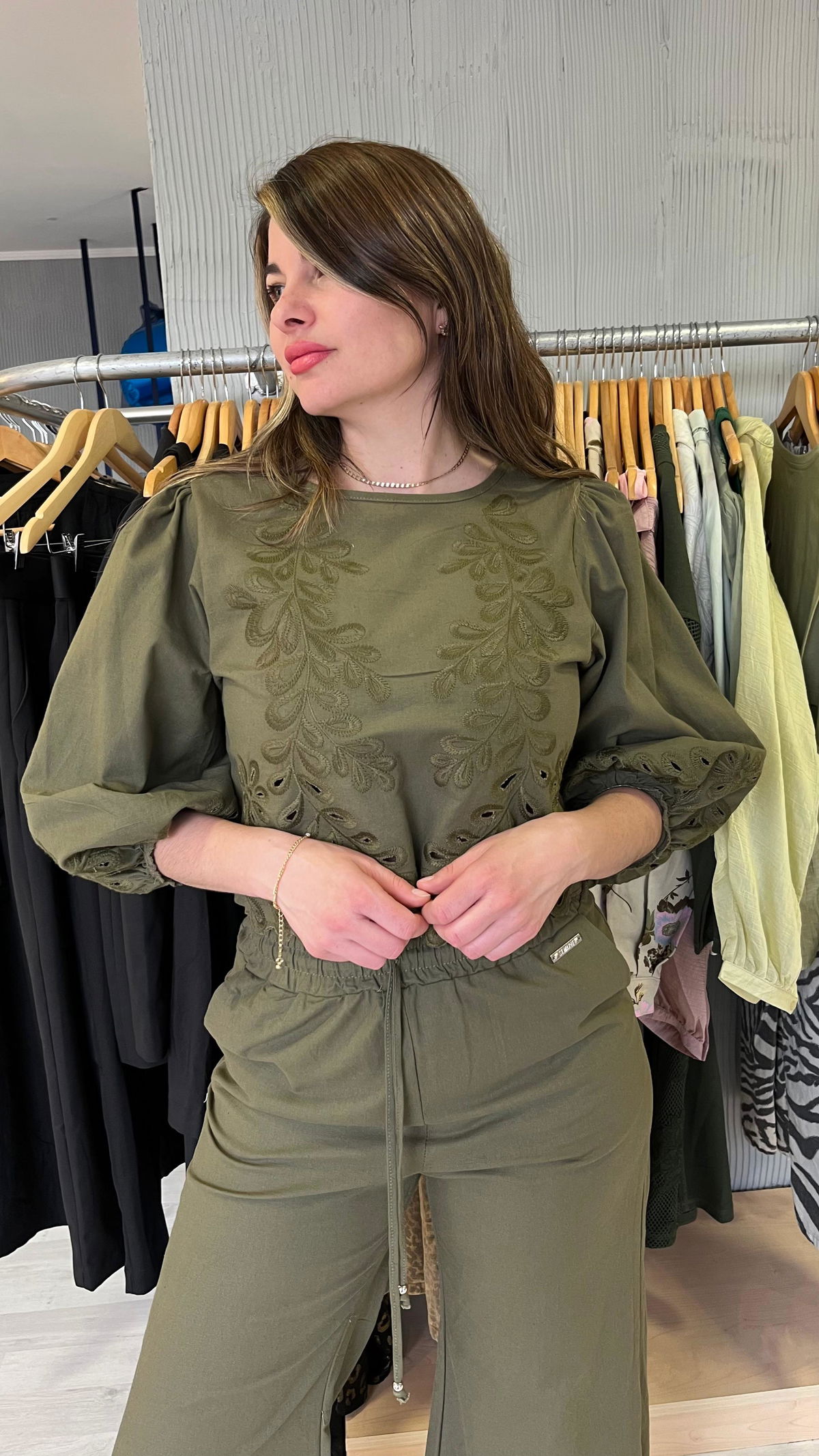 Hace conjunto con el pantalon Juana
