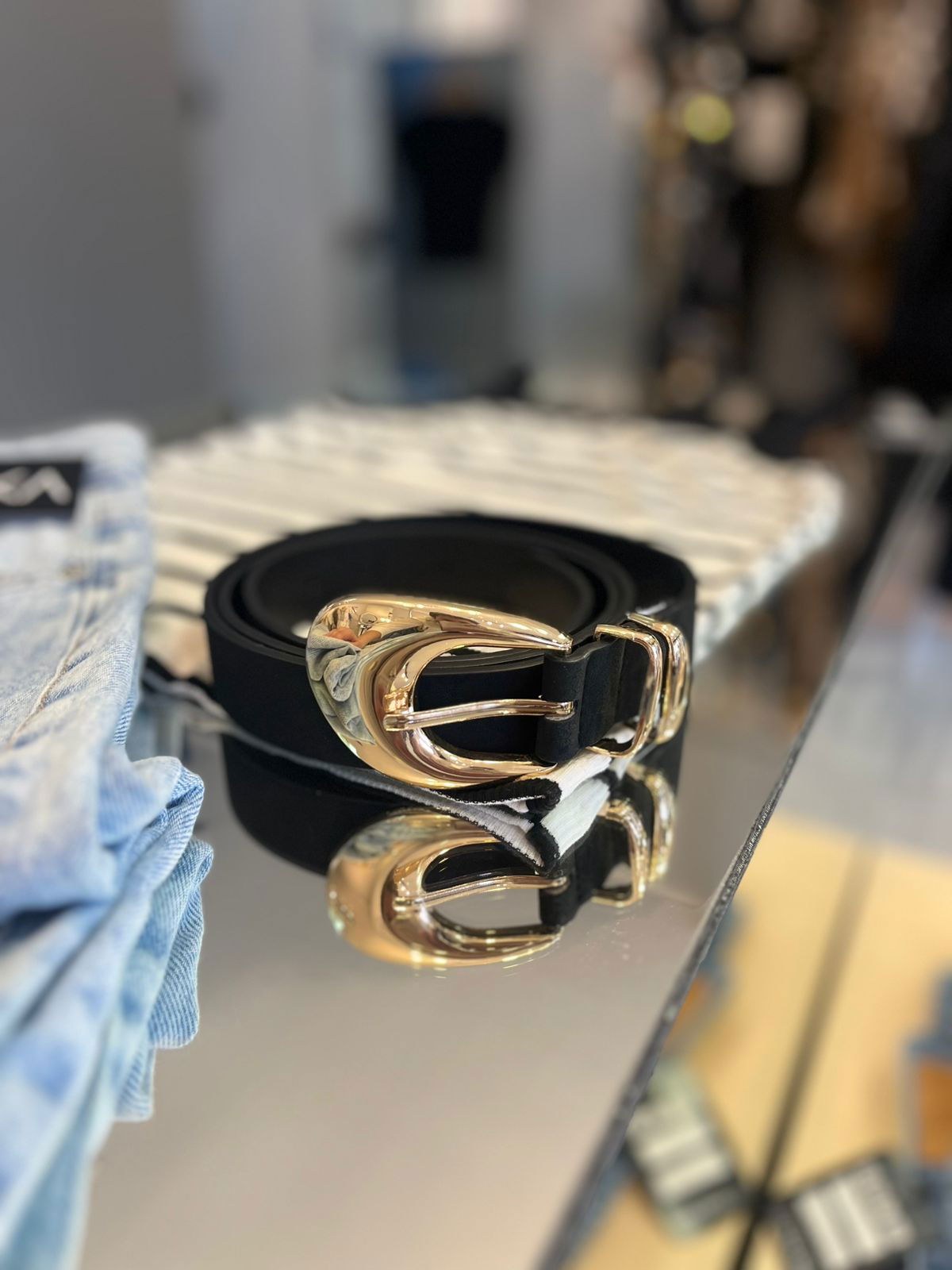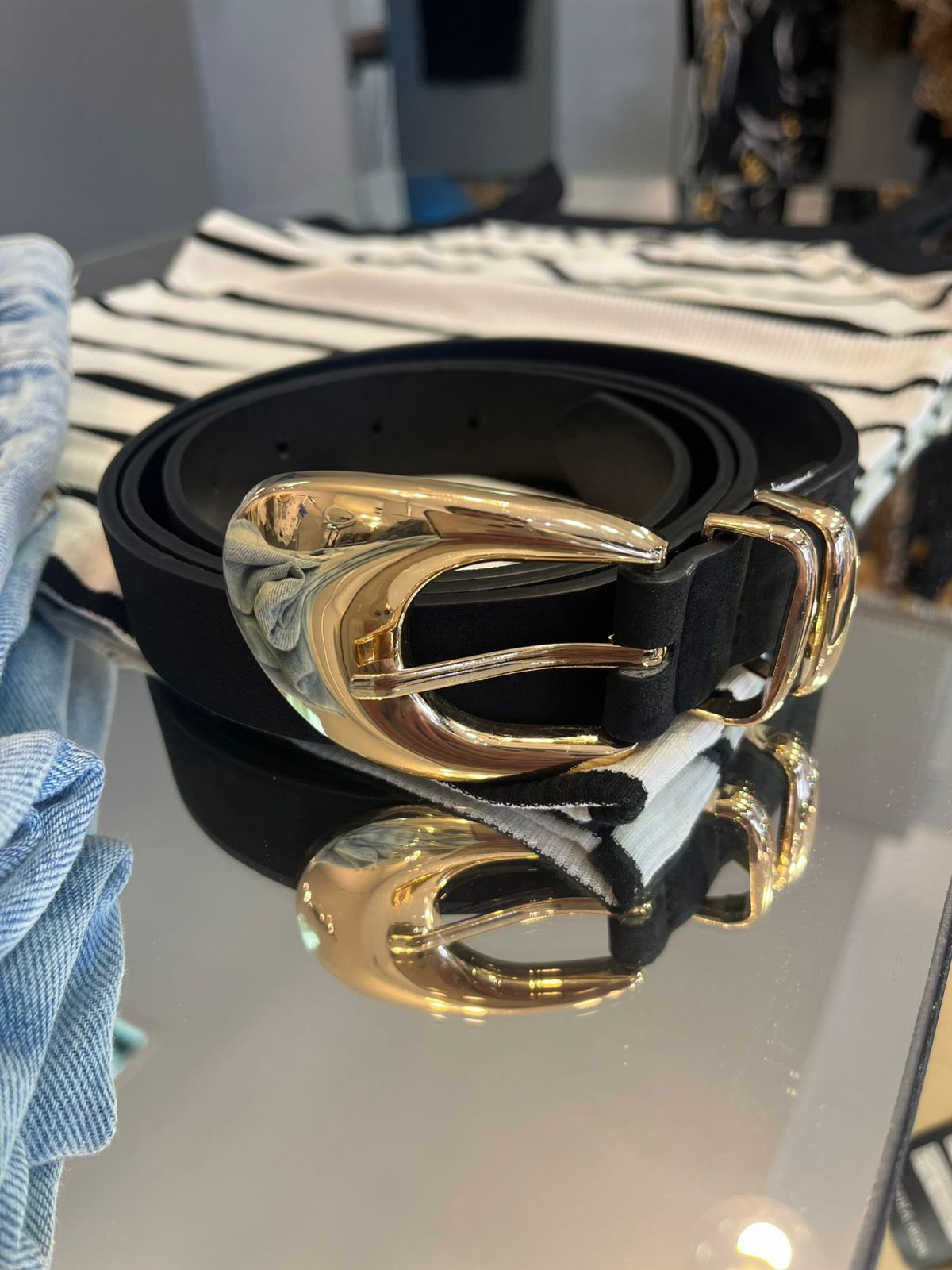 Cinto XL con hebilla metalizada color dorado