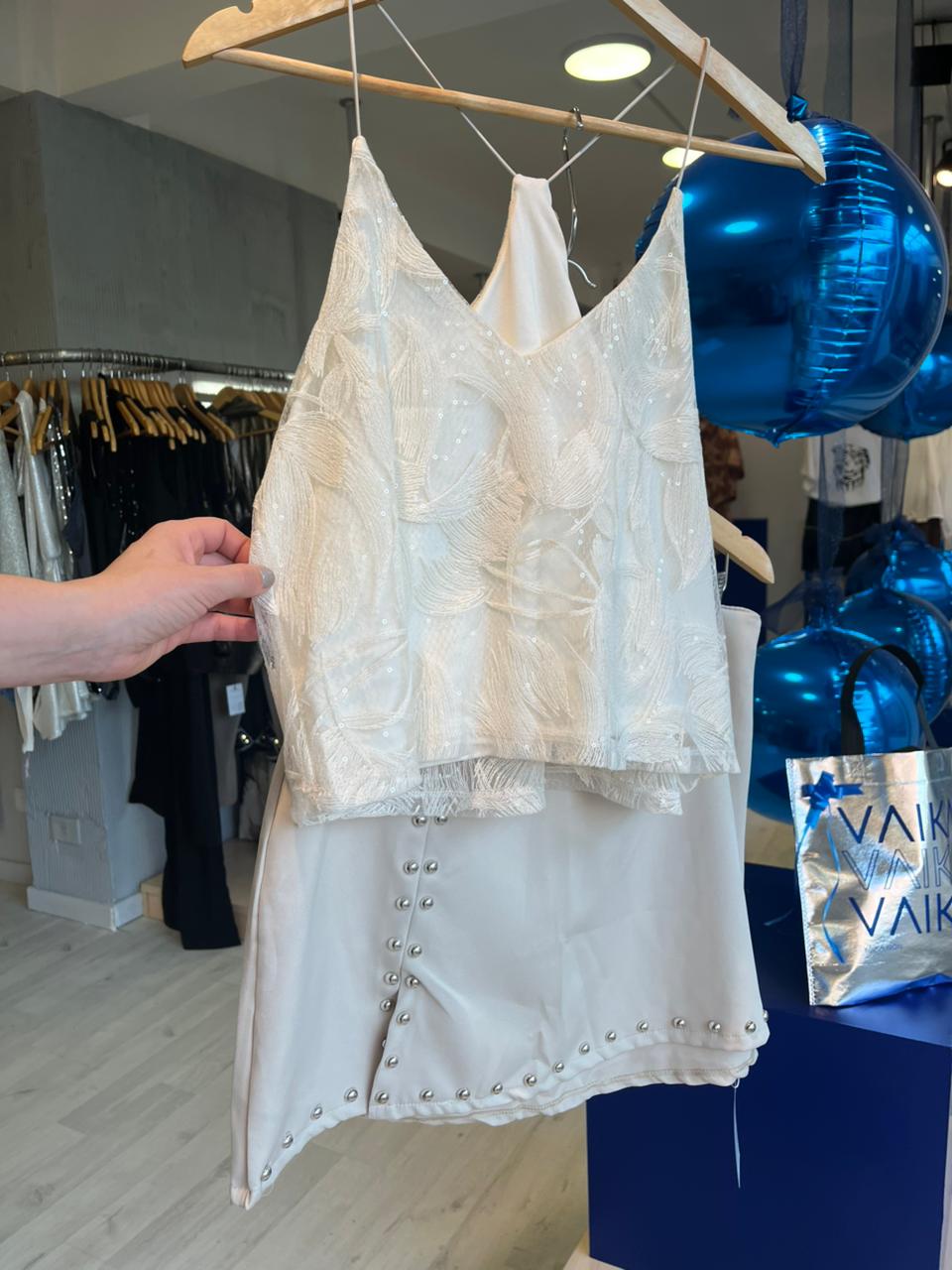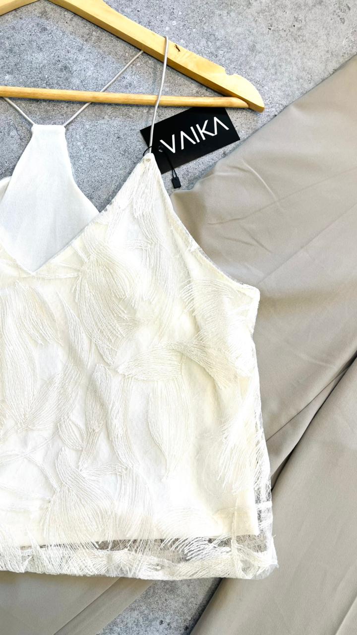 Musculosa bordada con breteles finos. Talle Unico.