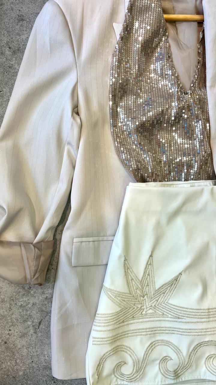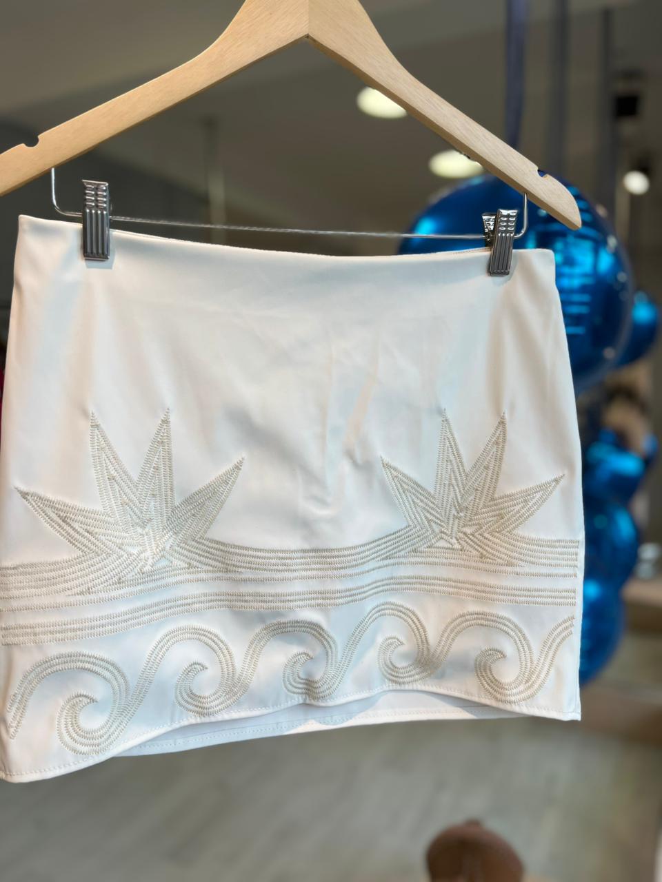 Mini de cuero ecologico, bordada adelante. Cierre lateral