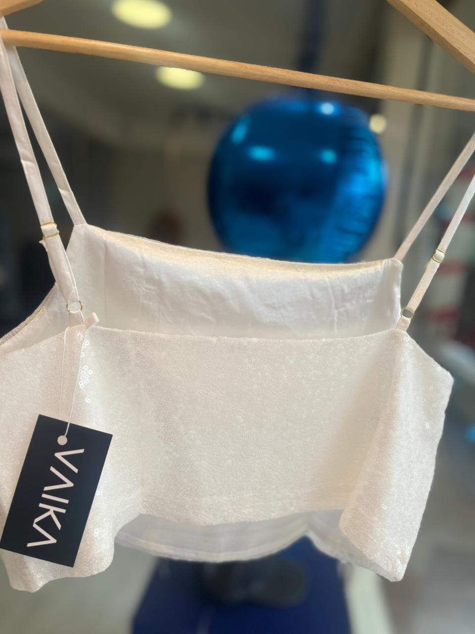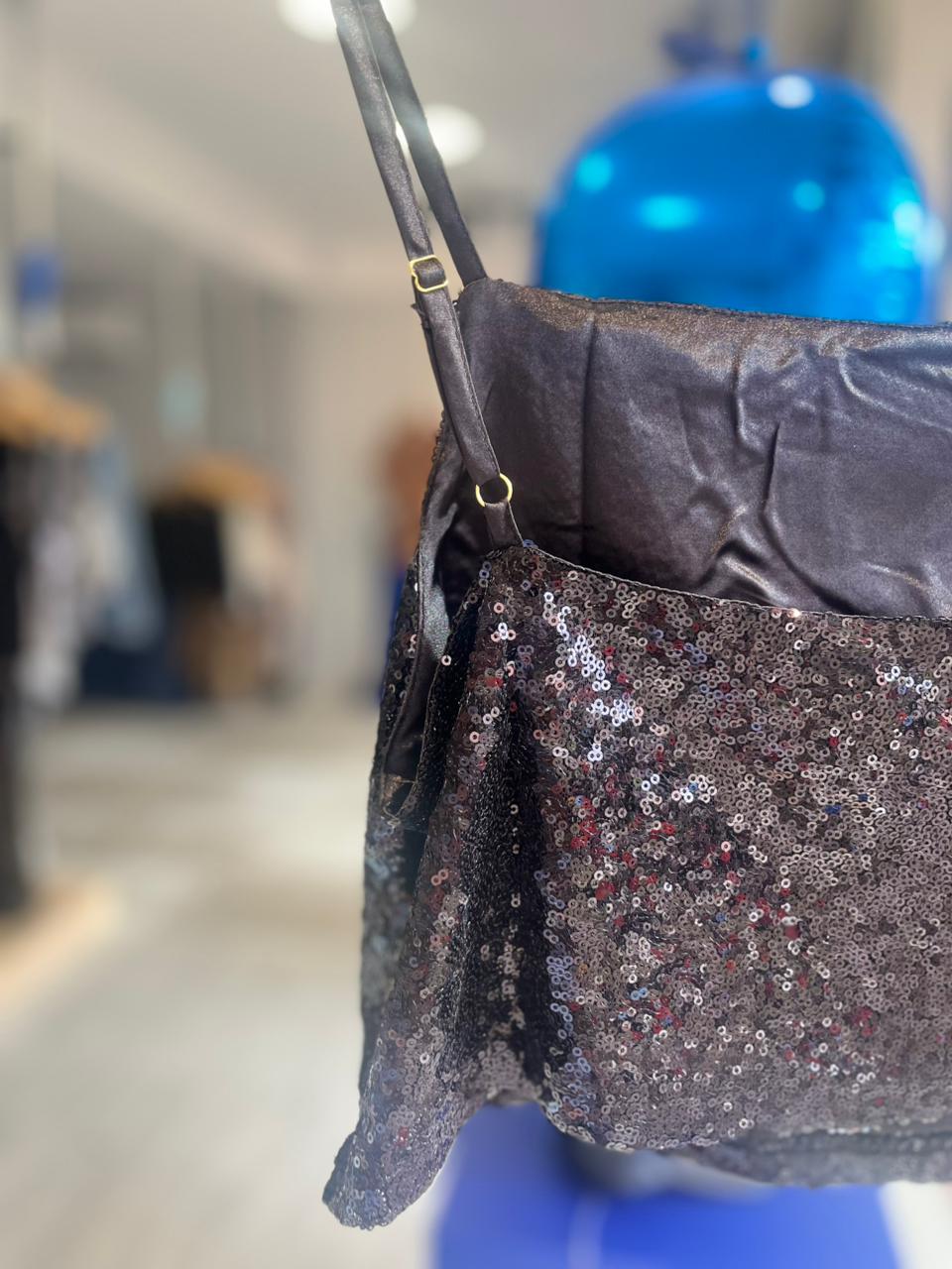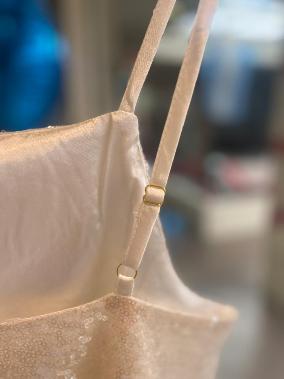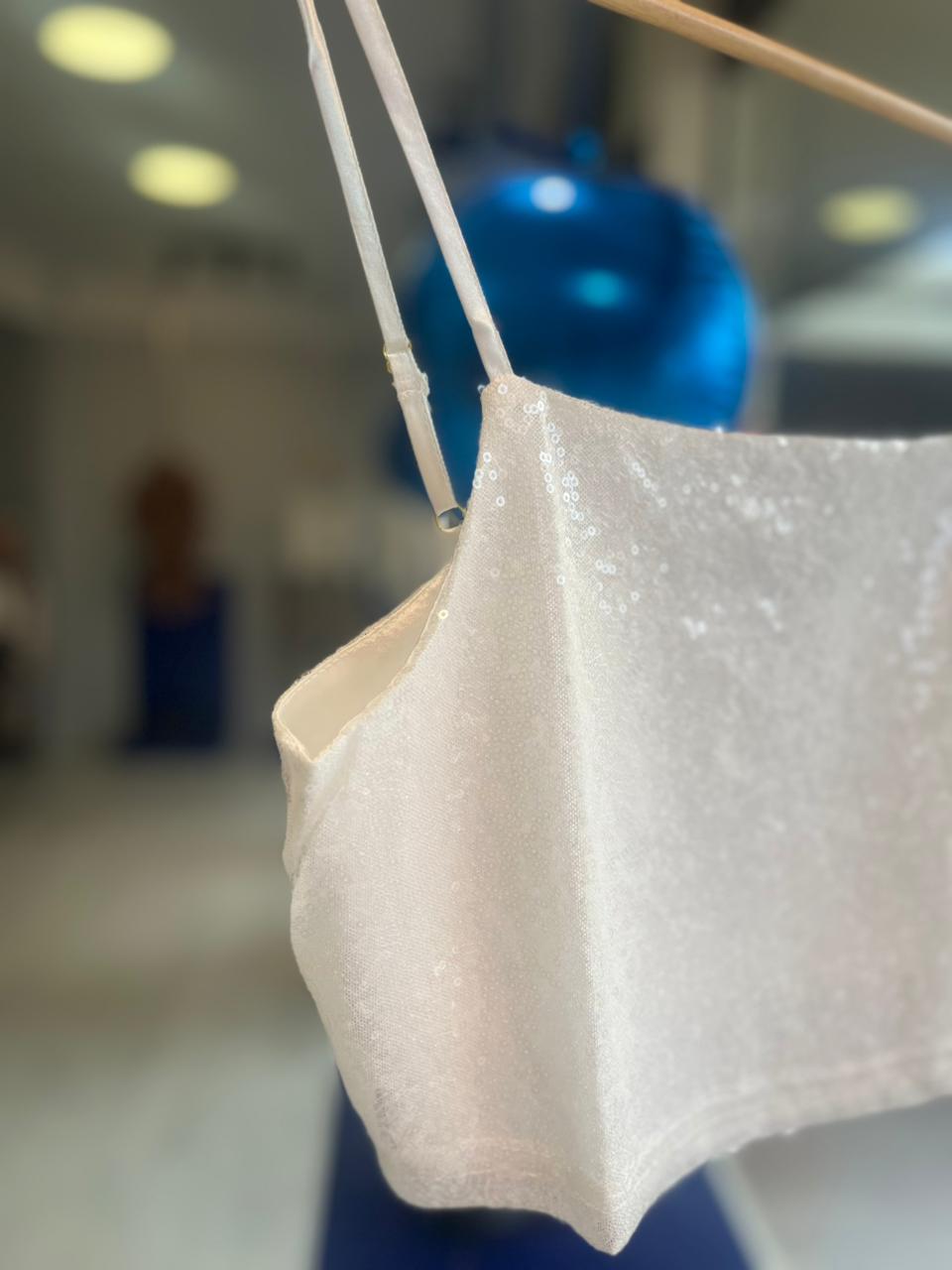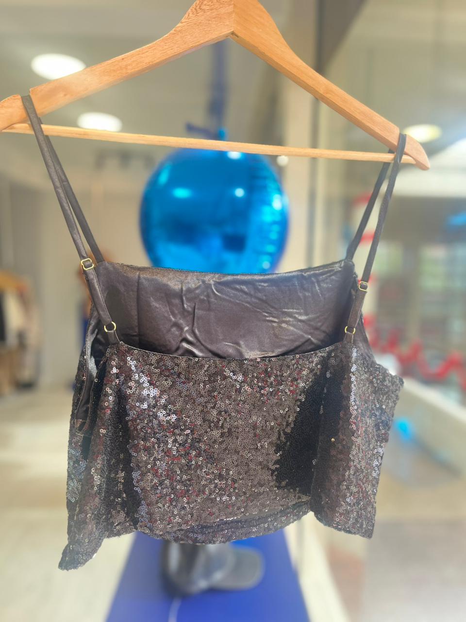 Top de lentejuelas con forro y bretel regulable. Viene por talle