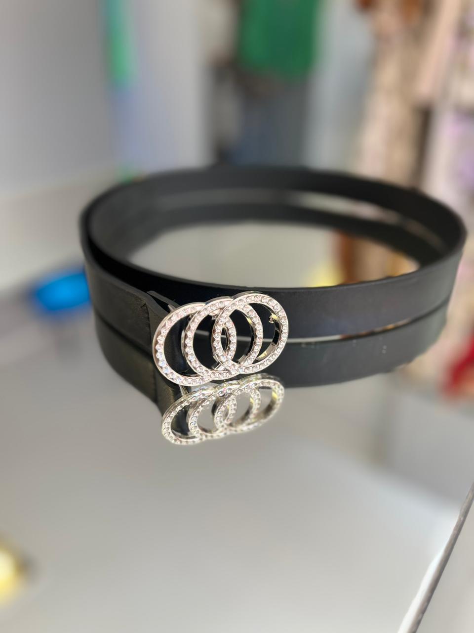 Cinto Negro Hebilla Plateada