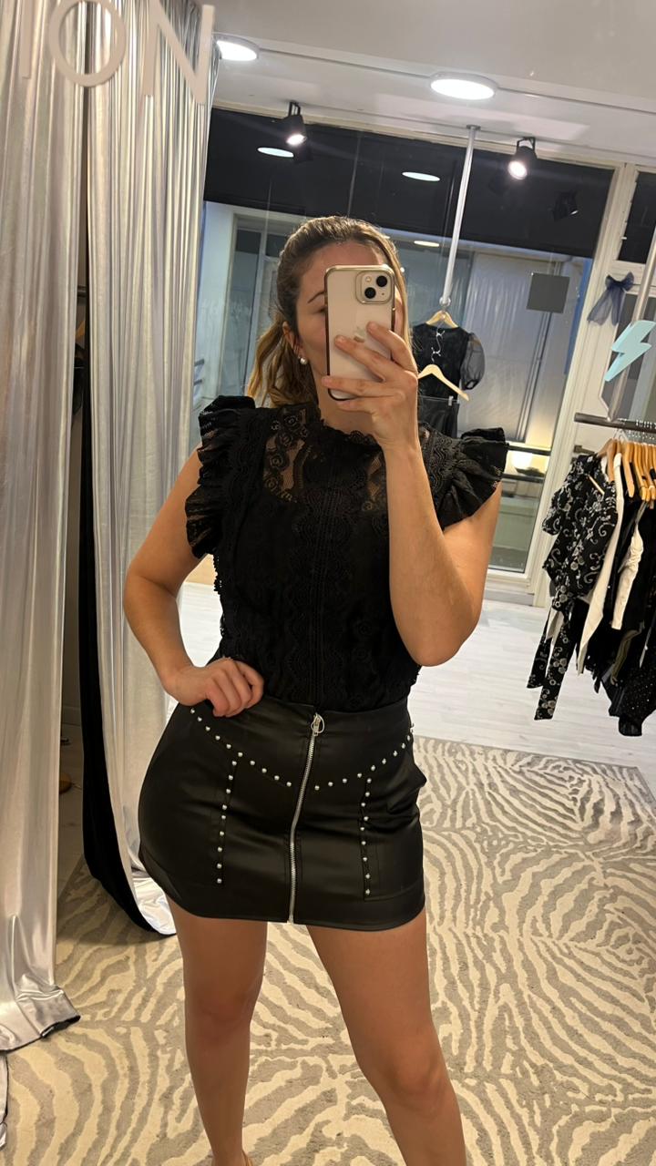 Mini de eco cuero con cierre y bolsillos
