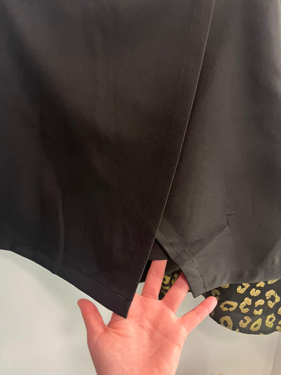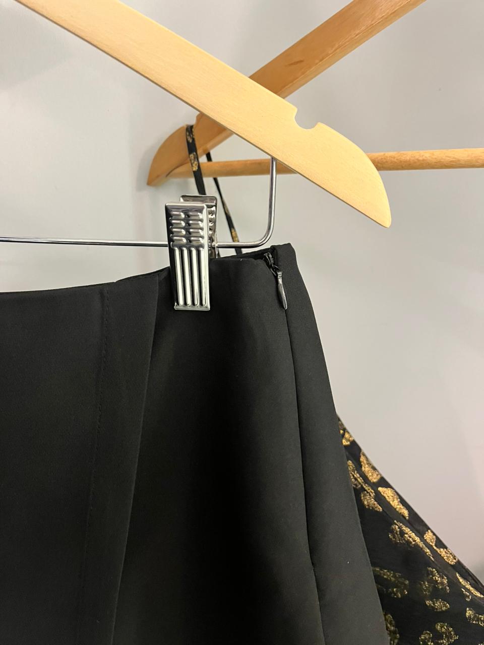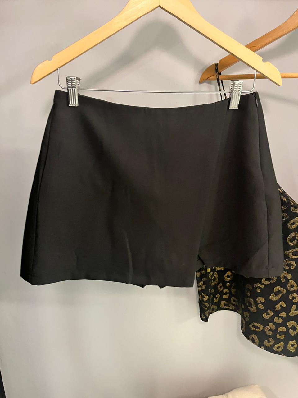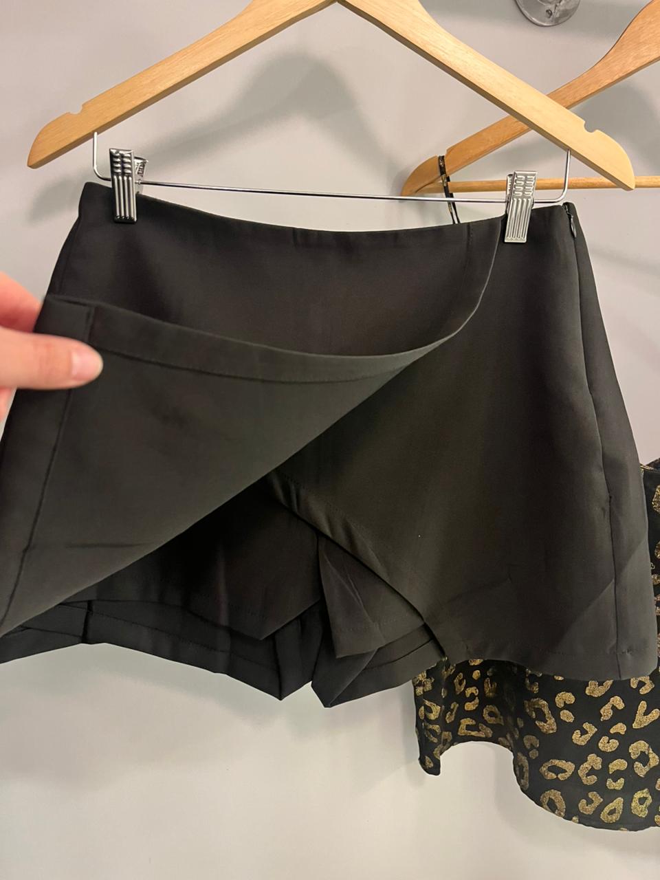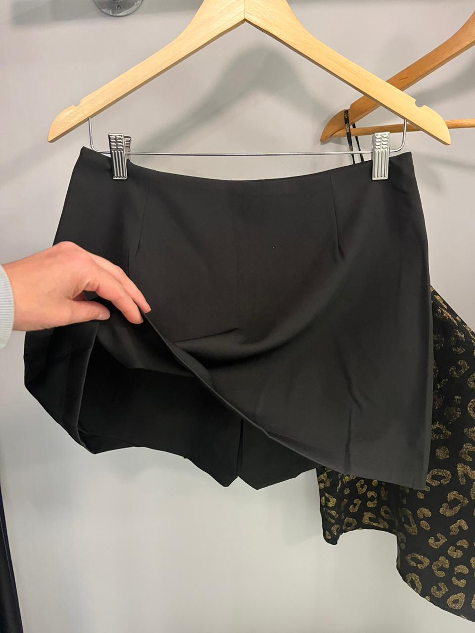 Short pollera portafolio de crepe sastrero. Tiene cierre lateral y detalle de aplique metalico dorado.La talle 42 no tiene aplique, las demas si.