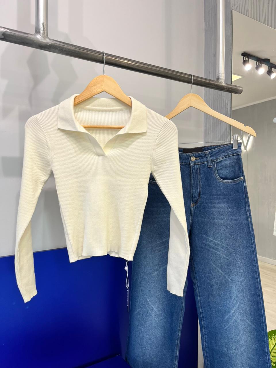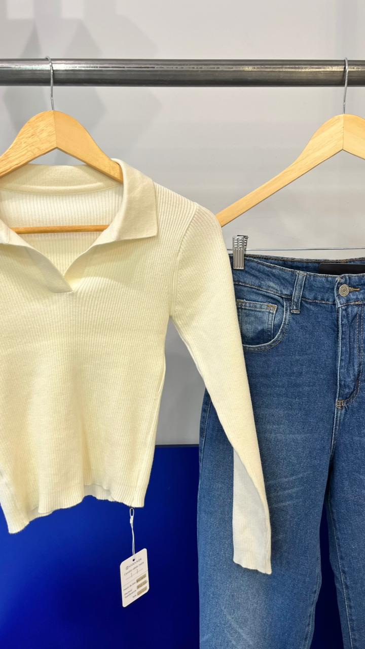 Sweater polo tejido en morley