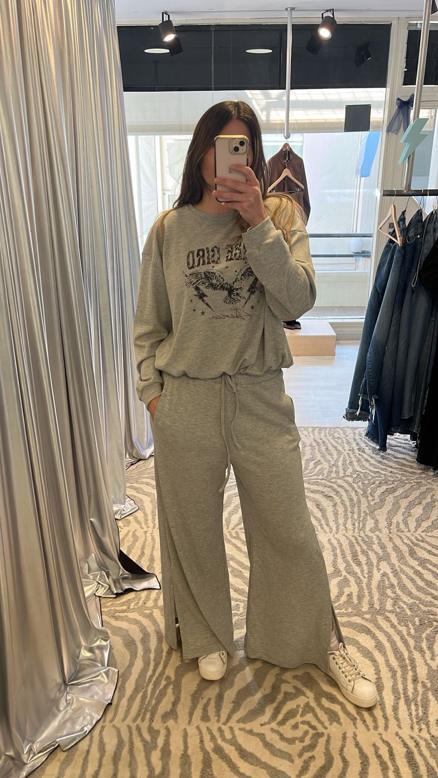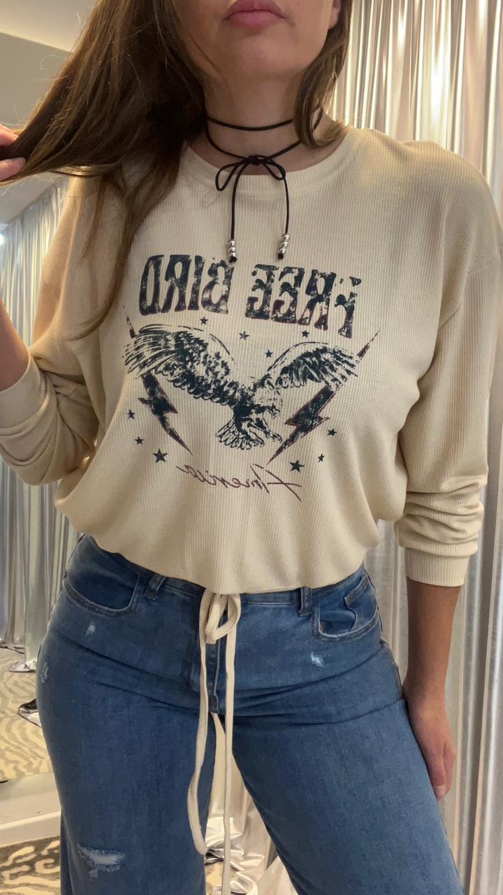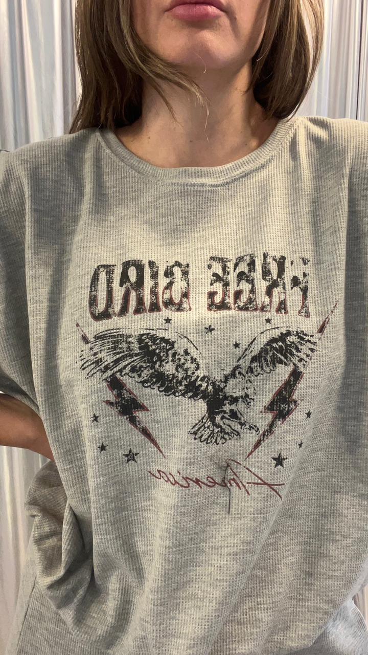 Buzo en tela waffle de punto con estampa central en delantero. Cuello redondo, sisa baja y tirita para ajustar en el ruedo. Podés hacer conjunto con *Pantalón Lewis.