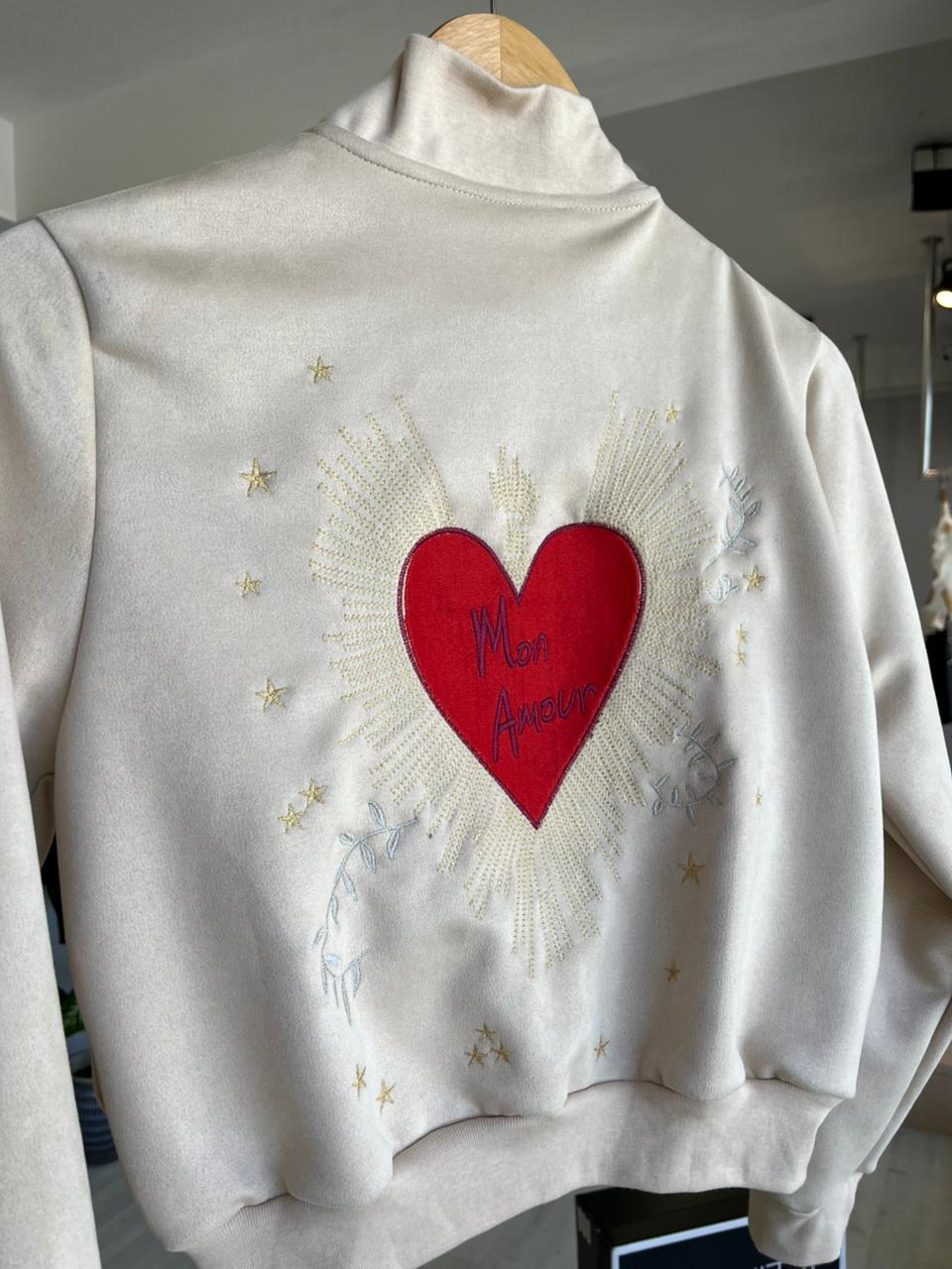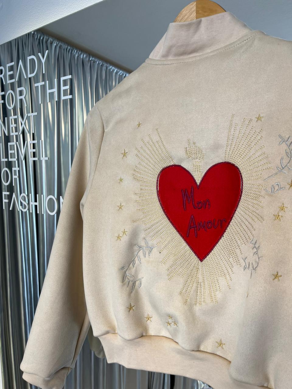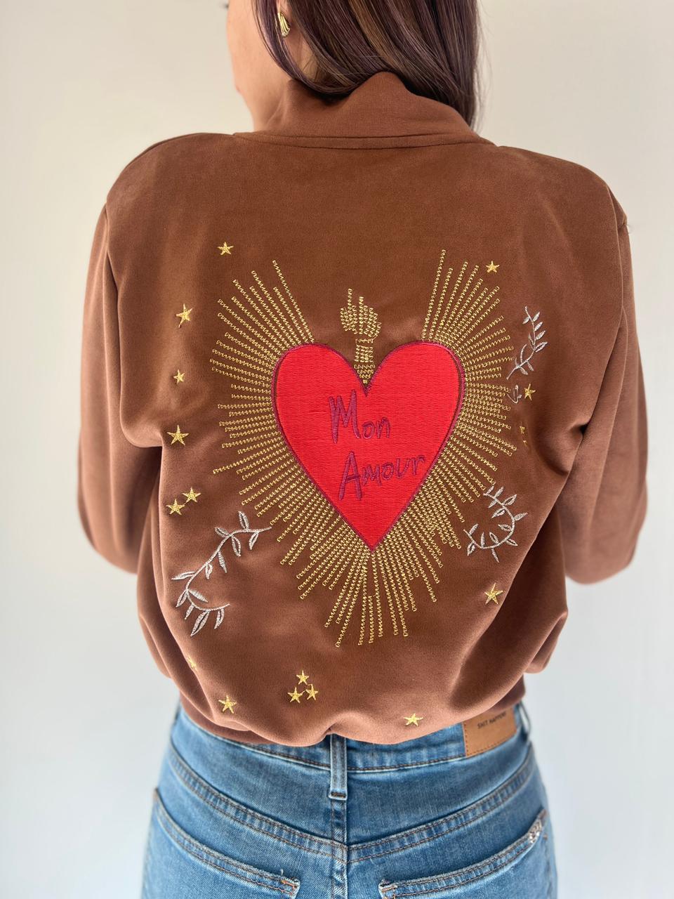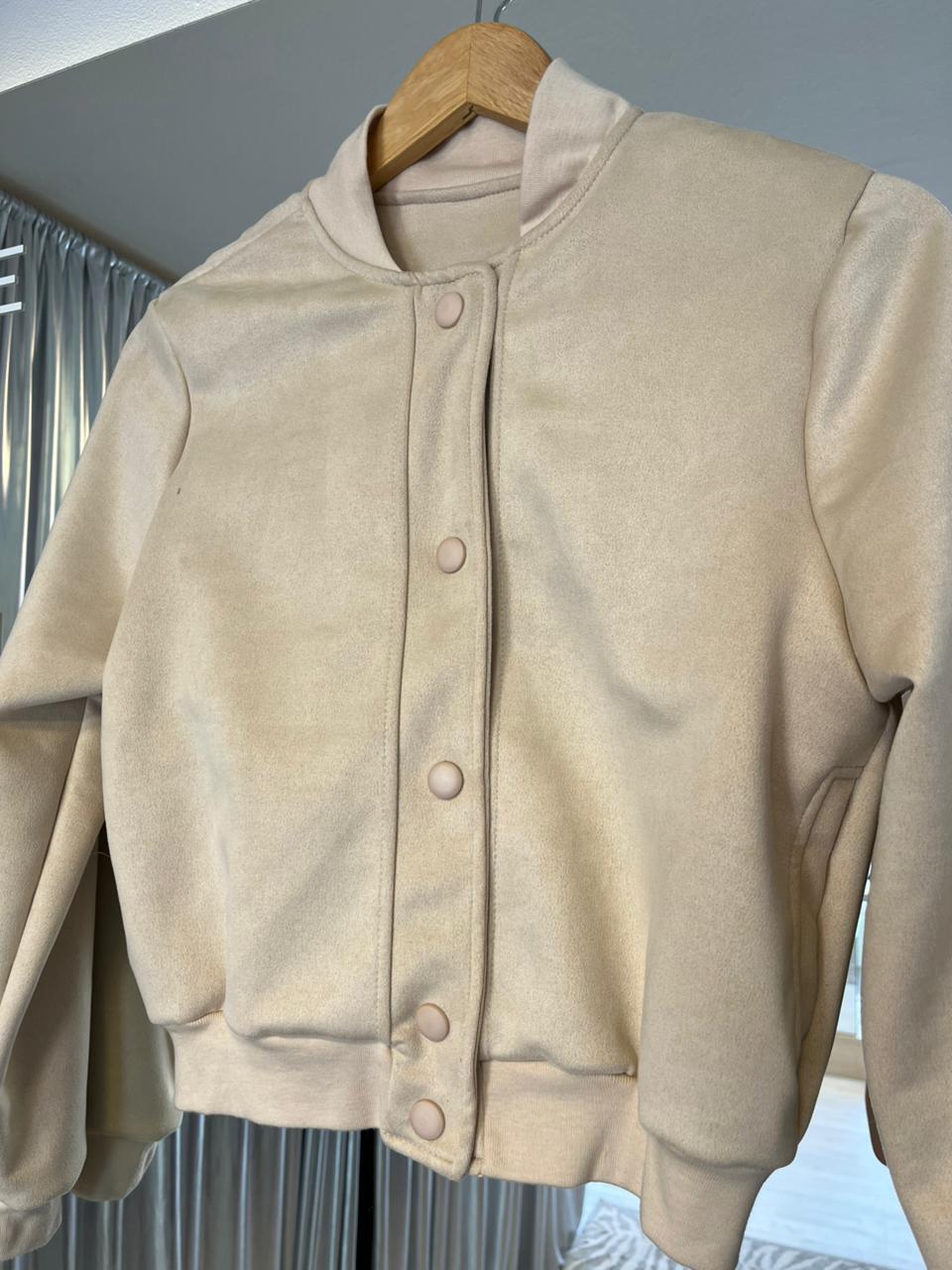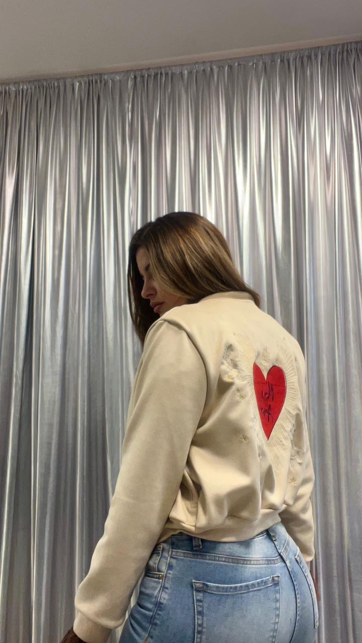 Campera bombera de cuero gamuzado con bordado en la espalda y detalles en ribs (cuello, puños terminacion)