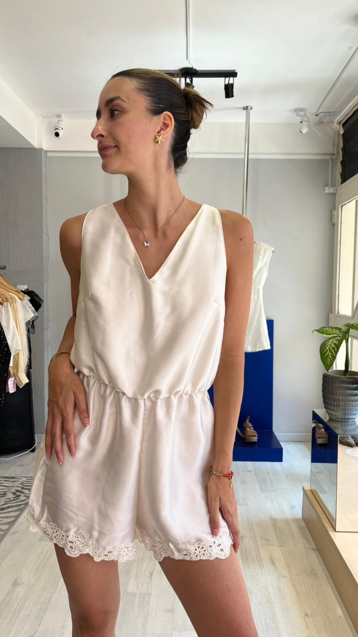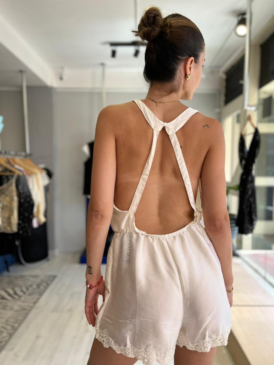 Mono Short de saten, con detalles y espalda descubierta.