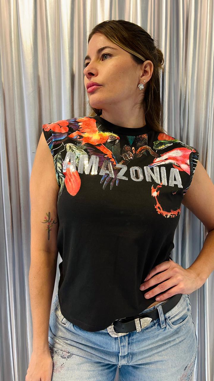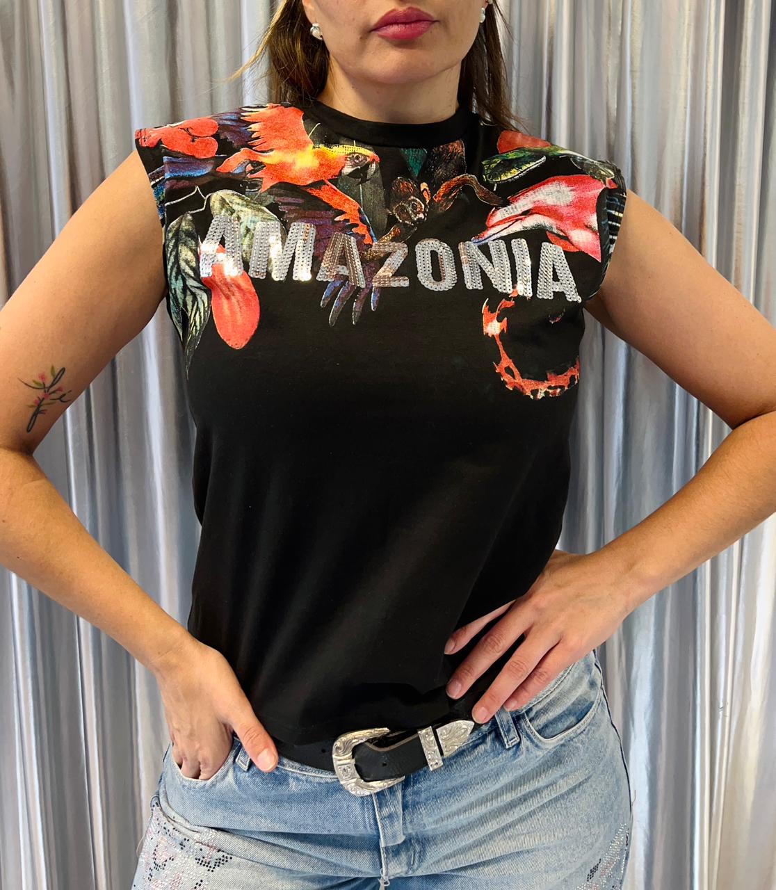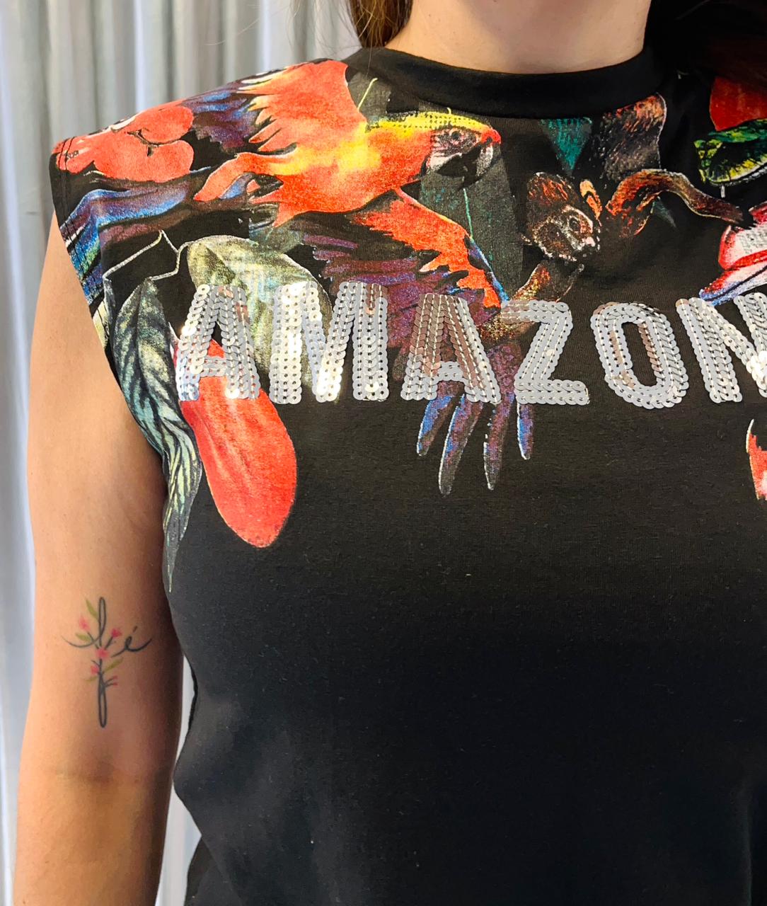 Musculosa de algodon con estampa sublimada y bordado de lentejuelas.